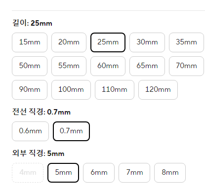 스프링 규격 : 굵기 :0.7mm x 길이 25mm x 지름 5mm