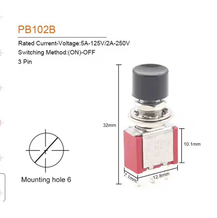 3핀 6mm, C-NO-NC, 2A 250VAC, 5A 120VAC 버튼